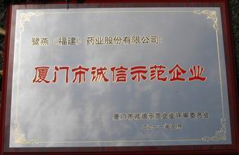 “2008 —2009年度廈門誠信示范企業(yè)”是廈門首個誠信企業(yè)評選活動。本活動由廈門市誠信促進(jìn)會、廈門市企業(yè)和企業(yè)家聯(lián)合會、各級政府機關(guān)等28個相關(guān)部門聯(lián)合開展,組委會本著“公開、公正、公平”的原則首次在全市范圍內(nèi)共同開展誠信示范企業(yè)的評選。經(jīng)過一系列激烈的競爭及組委會的嚴(yán)格評選,本企業(yè)最終獲得了 “2008—2009年度廈門市誠信示范企業(yè)”的榮譽稱號。