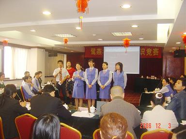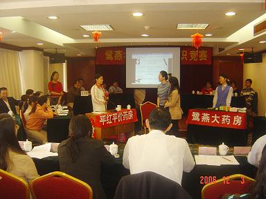 廈門鷺燕大藥房有限公司于2006年12月3日在廈門廬山大酒樓隆重舉行鷺燕杯首屆工會知識競賽,此次工會知識競賽由6個工會小組各自選派4名選手參加,比賽環節包括團隊介紹、啦啦隊互動、演講比賽、必答題、搶答題、猜詞秀、才藝表演等,形式多樣、內容豐富。比賽現場還邀請了一些供應商的代表作為嘉賓評委,為比賽進行現場點評及頒獎。