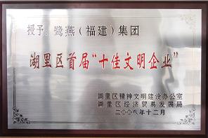 據(jù)悉,在湖里區(qū)文明辦開展的文明企業(yè)創(chuàng)建活動中,鷺燕(福建)集團(tuán)有限公司榮膺湖里區(qū)首屆“十佳文明企業(yè)”。